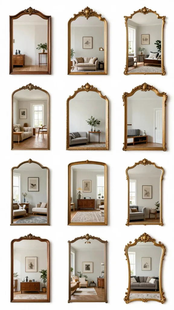 A vintage-inspired oversized wall mirror can transform your living room into a luxurious retreat. Its grand presence draws the eye and reflects personality, particularly when framed in rich mahogany or aged silver. This striking piece can complement the decor while expanding the visual space.