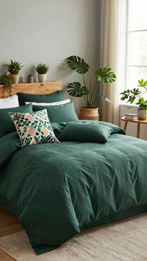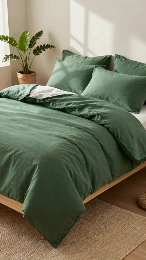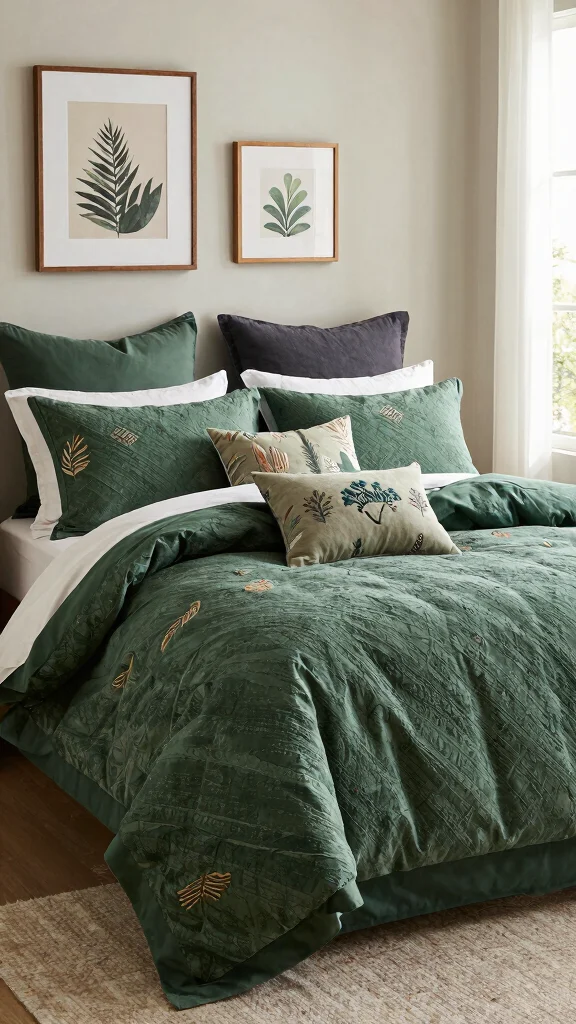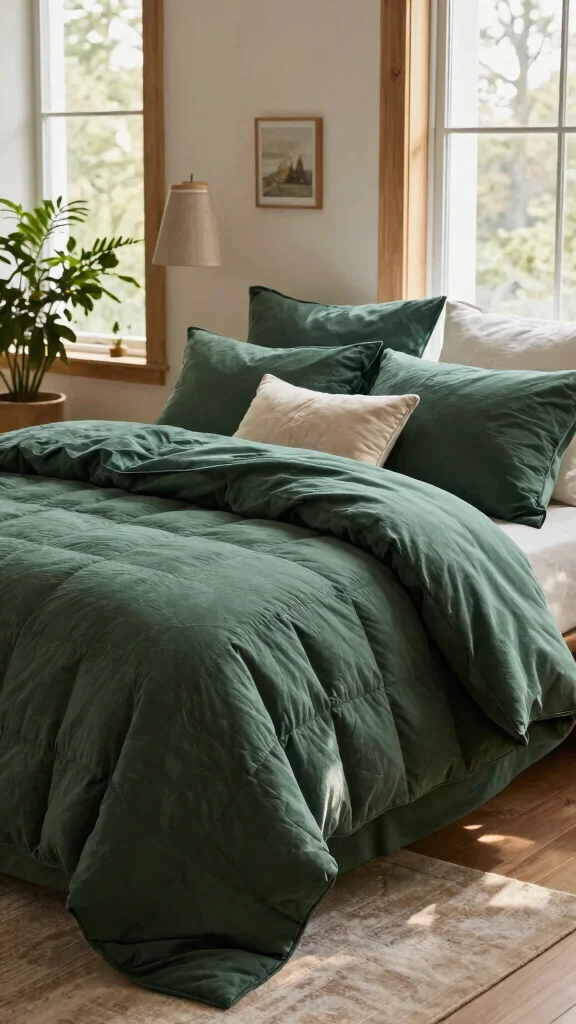 As you consider your choices, think about how each option can reflect your personal style and values. Whether you’re drawn to luxurious textures, vibrant patterns, or minimalist designs, there’s a forest green bedding idea that’s perfect for your sanctuary.