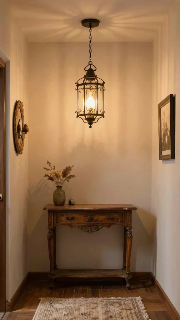 Incorporating a vintage fixture adds depth and personality to your small foyer, making guests feel warmly welcomed.