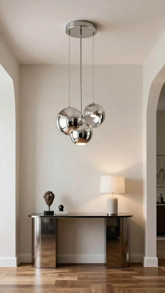 Materials like polished brass or frosted glass add a touch of sophistication, while a dimmer switch can help you create the perfect ambiance for different occasions. This combination not only brightens your entryway but also adds a chic flair to your home.