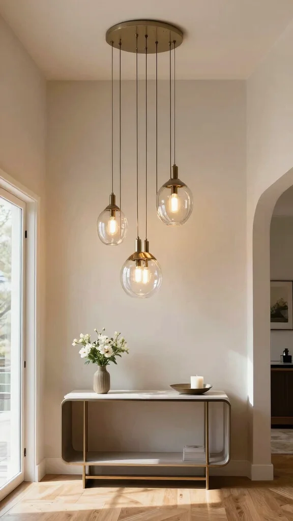 Be mindful of their placement to keep your entryway from feeling cramped. Many homeowners choose to cluster smaller pendants for a dramatic yet cohesive look that adds depth to the room.