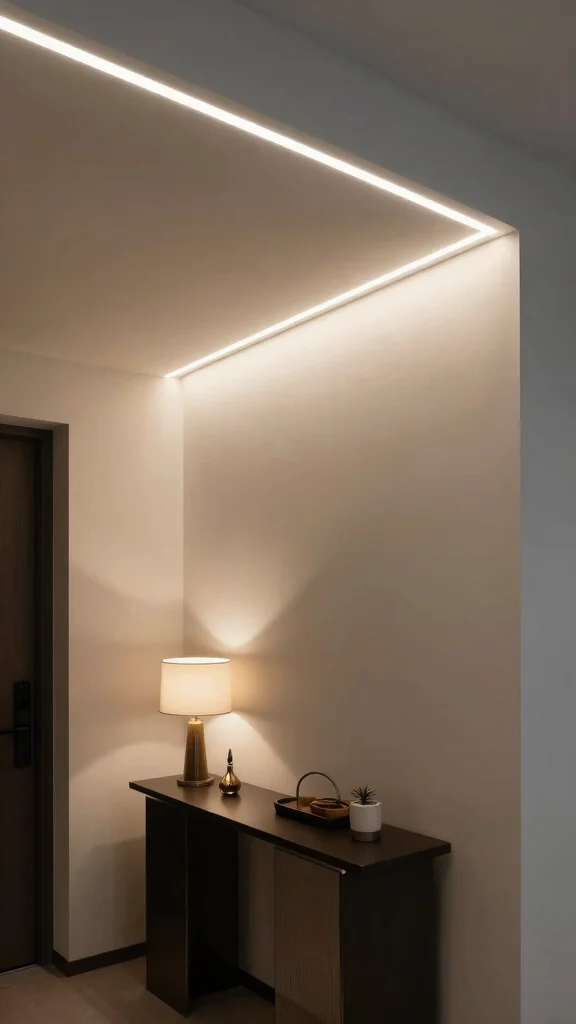 LED strip lighting is your flexible fix for foyer lighting fixtures low ceiling—install under shelves or along door frames to create a soft, dramatic glow. Start warm white for coziness, or add color for mood. Pair with a smart hub for simple, seamless control.
