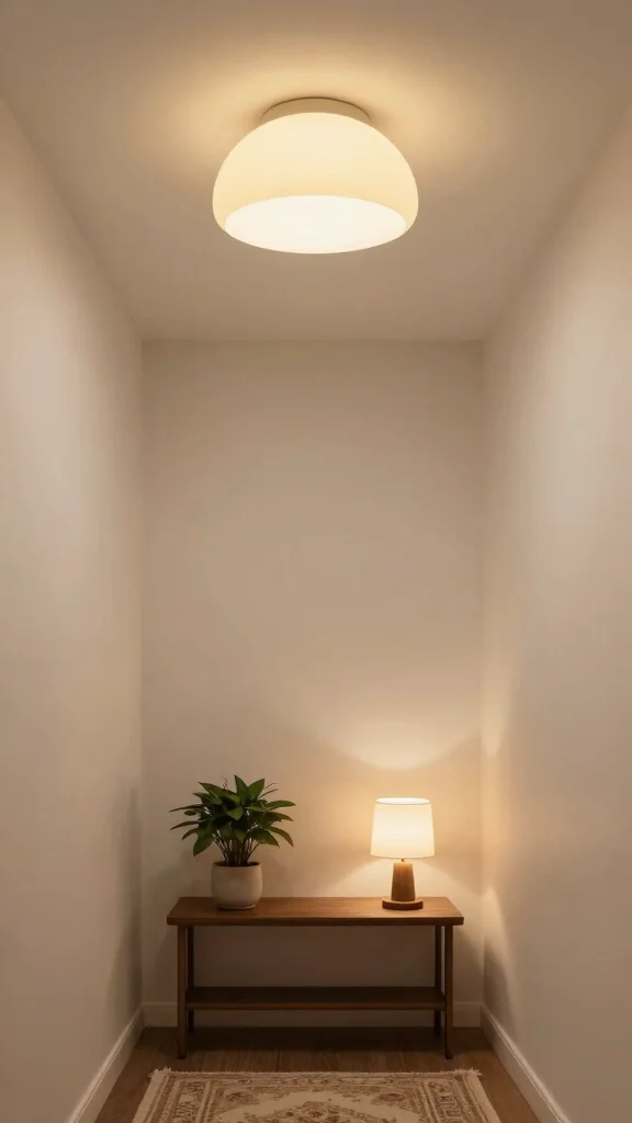 Start with one overhead flush or semi-flush ceiling fixture as the anchor, then add 1–2 wall sconces on the sides to create layered lighting. The total lumens should comfortably light the space without glare—think practical brightness rather than showroom glare. Use dimmable LEDs and choose a light temperature around 2700K–3000K for a cozy welcome. This small space lighting solution approach keeps entryways airy while staying functional.