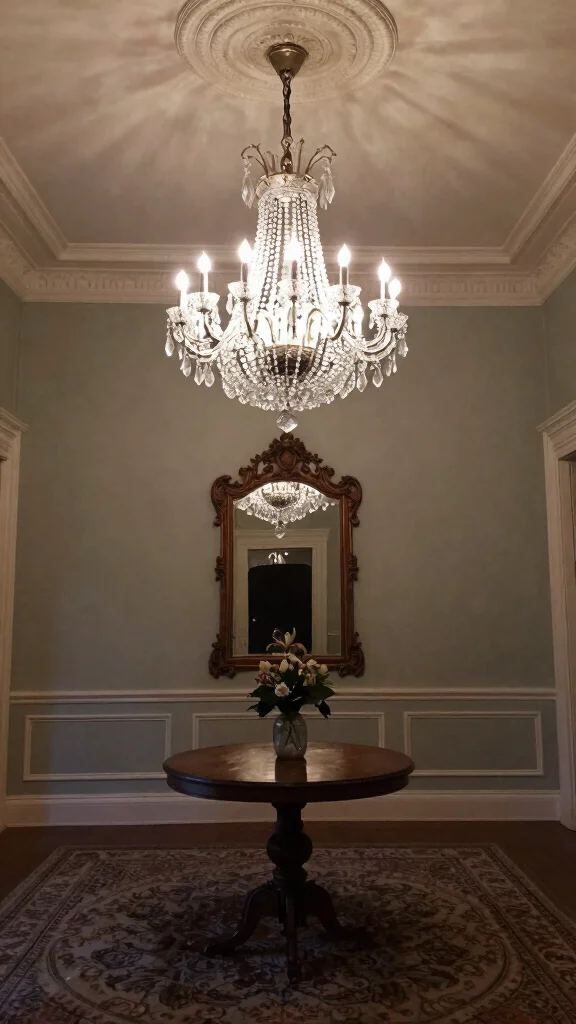 To make the most of this timeless fixture, ensure it complements your foyer’s size and is hung at the right height for maximum visual impact. Consider sourcing budget-friendly alternatives like glass or acrylic options that mimic the look of crystal without the hefty price tag.