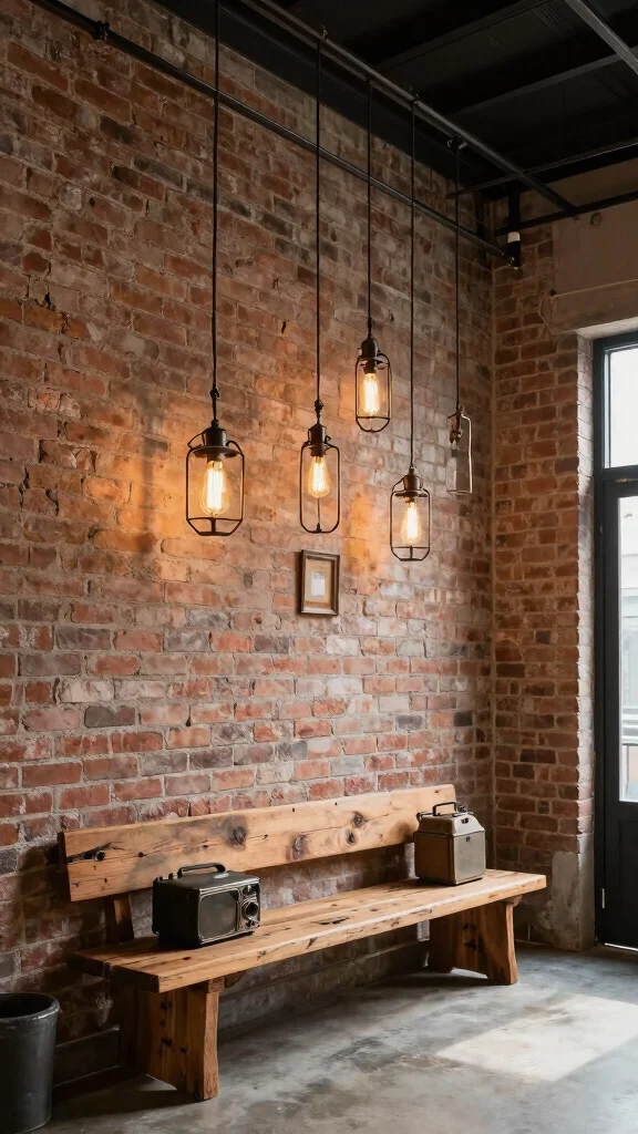 Industrial lighting fixtures with vintage touches create a striking contrast in your foyer. Featuring metal finishes and exposed bulbs, these lights channel a raw, urban vibe while maintaining warmth and charm.
