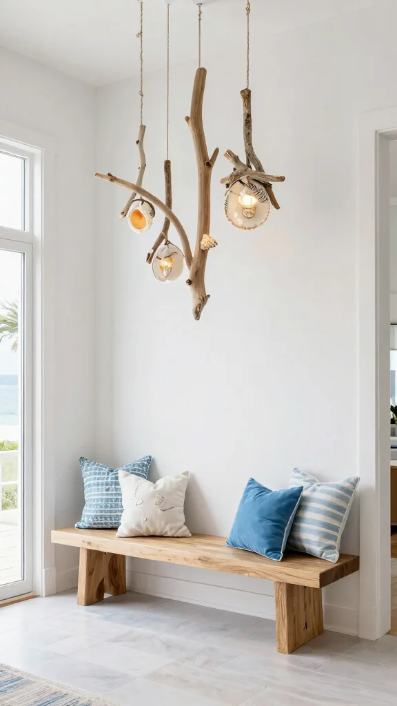 Coastal-inspired lighting fixtures bring a breezy vibe to your foyer, often featuring materials like driftwood or seashells that evoke the essence of seaside living. These lights create a relaxed atmosphere, perfect for those seeking a laid-back ambiance.