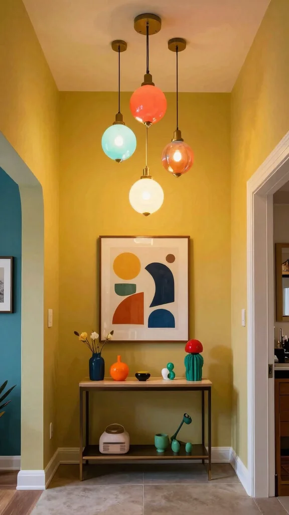 Retro globe lights add a playful and whimsical touch to your foyer. With round, colorful bulbs, they create a warm glow that evokes the charm of mid-century decor. These fixtures are perfect for adding character while illuminating your space.