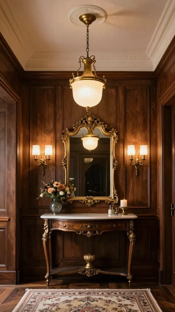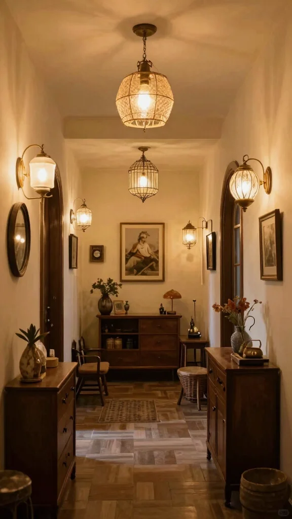 Vintage wall sconces are a fantastic way to introduce soft lighting to your foyer without occupying valuable floor space. They beautifully frame your entryway, highlighting artwork or architectural details while providing a welcoming glow.