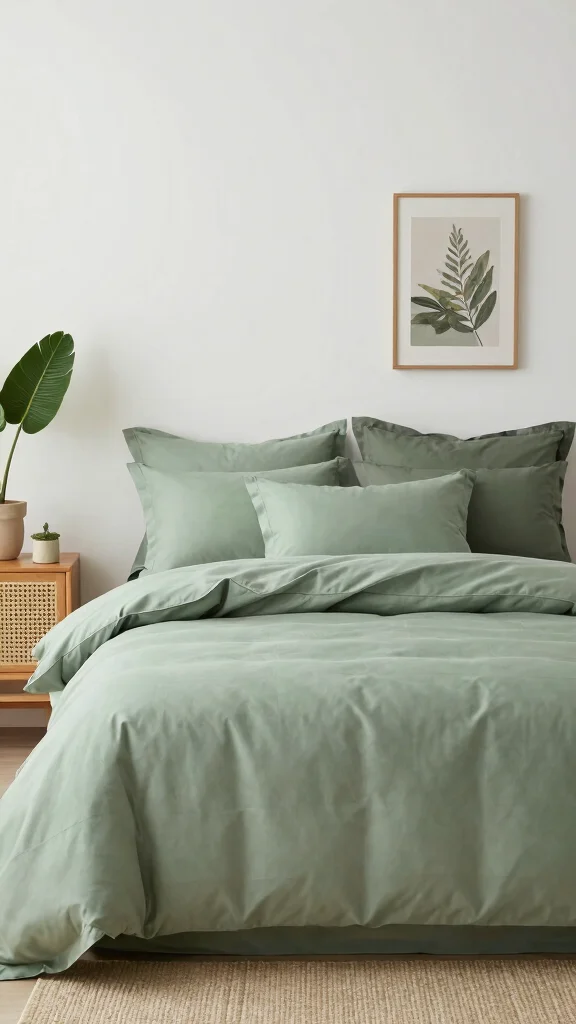 – Choose sage green duvet covers for a calming effect