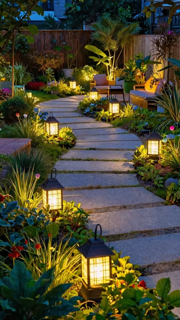Install outdoor solar lighting to illuminate your garden sustainably, providing safety and charm without increasing your energy bill.