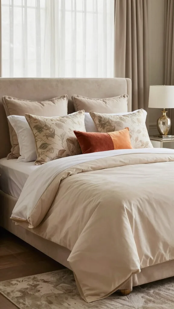Choose a color palette that complements your existing bedding and room decor. For an elegant look, stick to monochromatic tones or soft neutrals. If you prefer bold contrasts, select accent colors that pop against your bedding. Alternatively, consider seasonal colors to refresh your space throughout the year. For example, warm tones in fall or cool blues in winter can bring a cozy vibe.