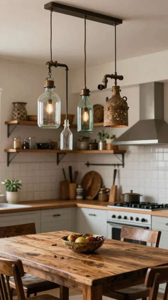 Elevate your kitchen’s style sustainably with upcycled pendant lights. Made from repurposed materials like industrial parts or bottles, these fixtures transform waste into stunning lighting solutions that stand out. Not only do they help reduce environmental impact, but they also add a distinctive touch to your decor, ensuring your kitchen is truly one-of-a-kind.