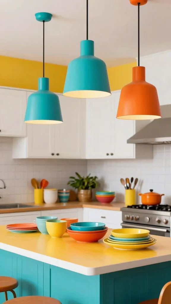 Brighten your kitchen with the energetic charm of color-blocked pendants. Utilizing bold color combinations, these fixtures can invigorate your space and create a lively atmosphere. From vibrant oranges and pinks to deep greens and blues, they serve as fantastic focal points that express your style.