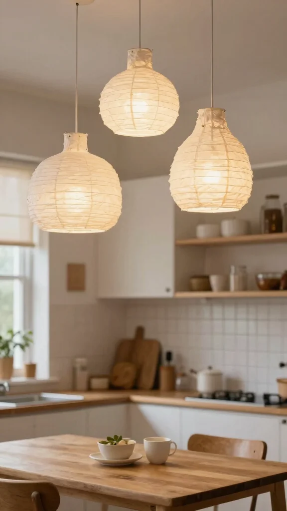 Paper pendants seamlessly blend with casual or contemporary kitchens, allowing their simplicity to shine. Opt for unique shapes and textures to introduce subtle visual appeal while keeping the design uncomplicated.