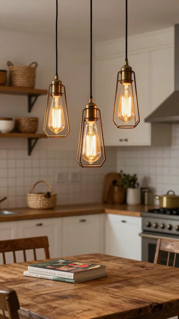 Embrace a nostalgic vibe with vintage Edison bulb pendants that infuse warmth and character into your kitchen. Known for their distinctive filament design, these bulbs can be paired with a variety of fixtures, blending seamlessly into both rustic and industrial styles. Showcasing the bulb itself through open fixtures enhances their vintage charm.