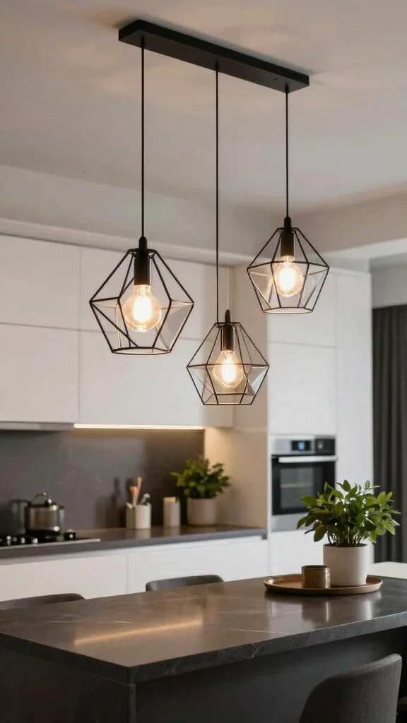 Geometric pendant lights are a trendy way to introduce modern flair into your kitchen. With their distinctive shapes—from hexagons to triangles—these fixtures offer both visual interest and effective illumination. Made from materials like metal and glass, they can enhance your space without overpowering it.
