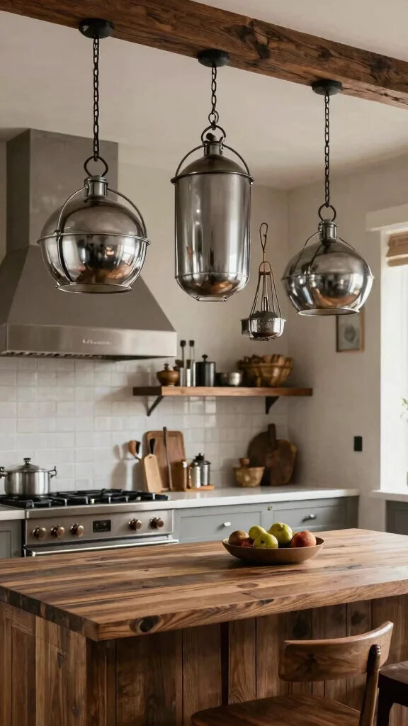 Artisanal metal fixtures introduce a touch of craftsmanship and personality to your kitchen. These handmade pieces often feature intricate designs and can range from sleek modern lines to ornate vintage styles. Hanging a few together can create a stunning focal point that doubles as art, adding depth and character to your kitchen decor.