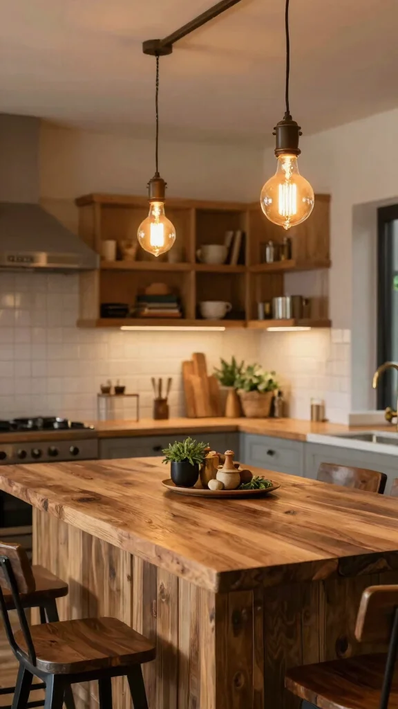 This lighting choice adds character and warmth, making your kitchen feel both stylish and inviting.