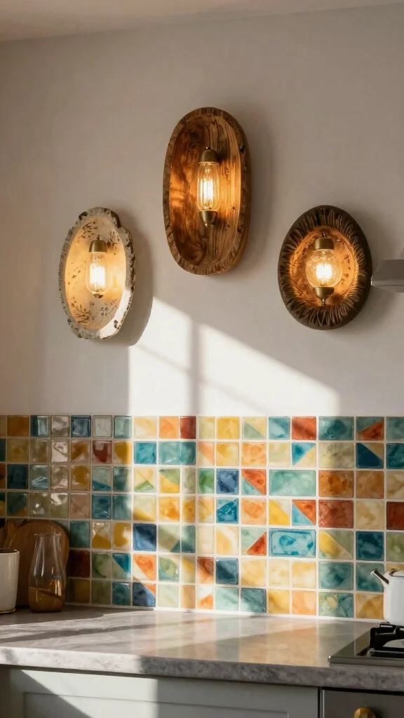 Combining art with functionality, wall sculptures featuring lighting elements become stunning focal points in your kitchen. These artistic pieces not only brighten your space but also express your personal style, serving as conversation starters. Look for designs that resonate with you and complement your kitchen’s aesthetic, enhancing the visual appeal of bare walls.