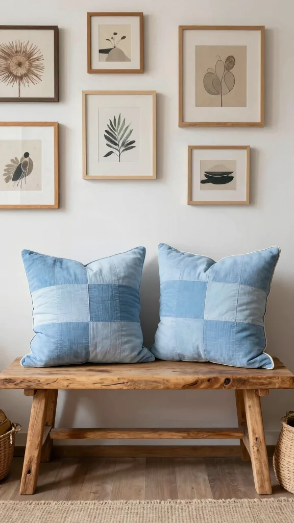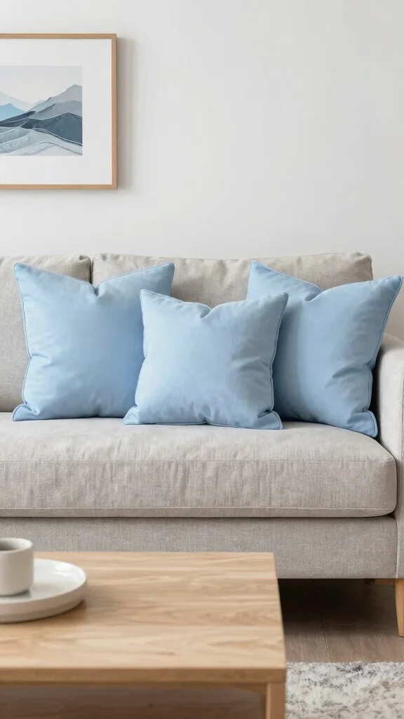 Layering light blue throw pillows is like giving your couch a soft coastal hug. Start with what you have, mix solid bases with textured accents, and add a few varying shapes for depth. It’s an easy, affordable update that makes any seating area feel cozier.