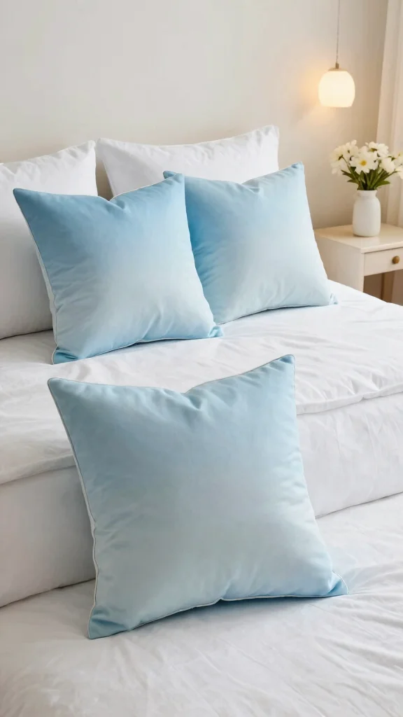 Ombre pillows featuring gradients from light blue to deeper shades create a stunning focal point in any room. This gradient effect adds depth while maintaining a serene atmosphere, seamlessly blending with various decor styles, from contemporary to rustic.