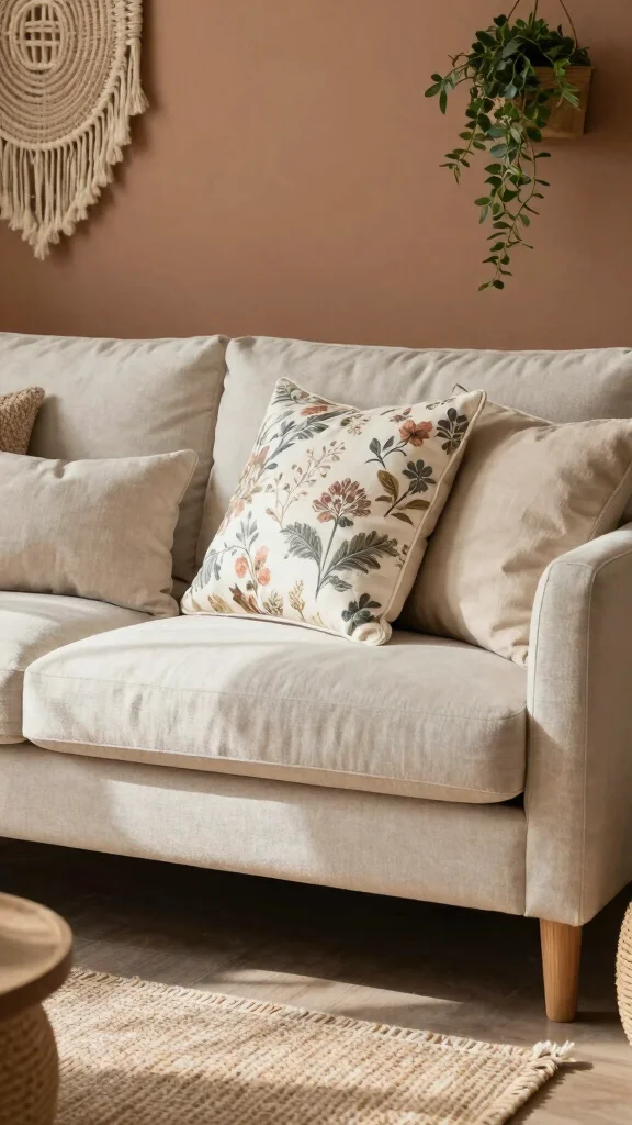 – Use pillows with botanical prints or subtle patterns for added interest.
