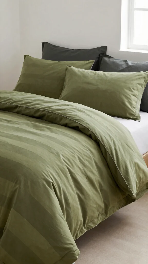 Great options include green bedding sets that are 100% cotton or linen, with olive greens mixed with cream or beige. A solid olive green duvet cover paired with white or sand-colored sheets creates chic contrast without breaking the bank. Look for reversible sets that give you two looks in one, or mix and match a cheaper olive green duvet cover with higher-end textured olive green throw pillows to elevate the look. Watch for dyes that fade less and opt for colorfast finishes for longevity.