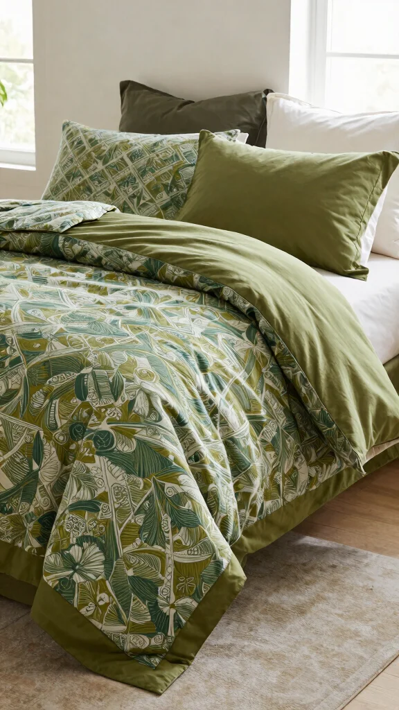 This playful take on olive green bedding allows for creative expression, making your space feel lively and full of energy.