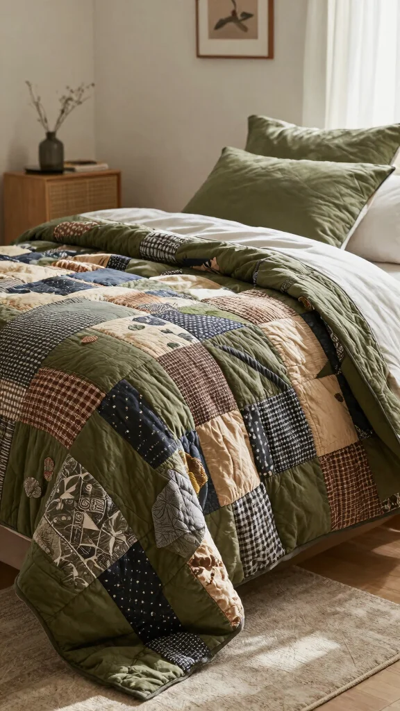 Combine them with solid color sheets to ground the look while allowing the quilt to shine. If you’re on a budget, consider making your own patchwork quilt using fabric scraps for a personal touch.