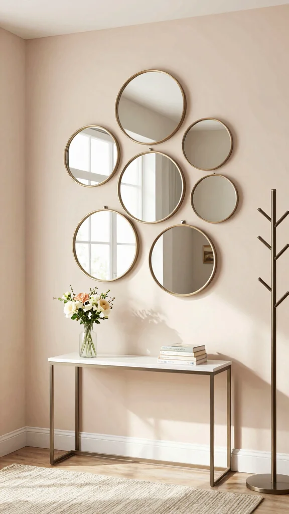In entryways, a cluster of round mirrors on wall can make the space feel larger and more welcoming.