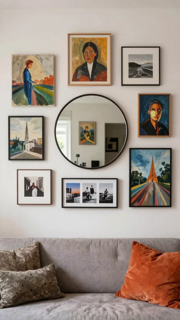 Fun fact: A curated display of round mirrors on wall can boost perceived space by up to 30% while reflecting natural light all day. Pair them with paintings and photos for a cohesive, gallery-worthy centerpiece that feels effortless and personal.