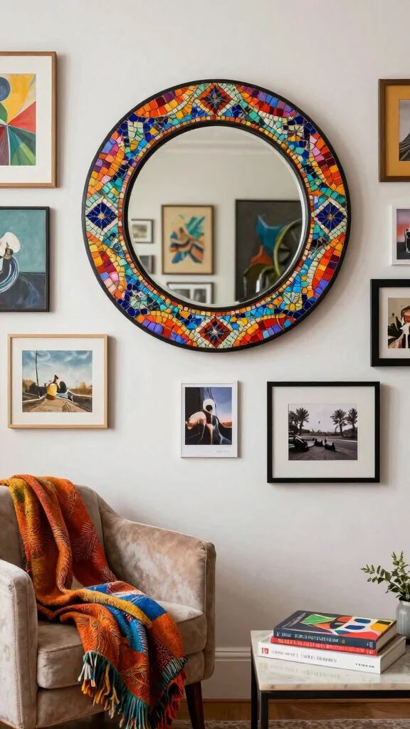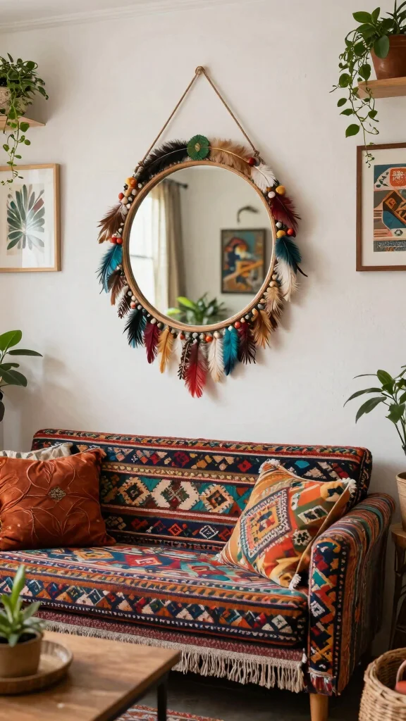 Budget-friendly tip: repurpose found frames or use affordable wood frames and a few statement pieces to mimic a high-end boho look without breaking the bank. This aligns with decorative mirrors and round mirrors on wall.