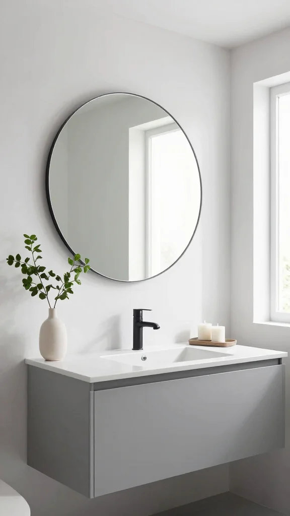 Floating round mirrors can be stunning features that draw the eye while maintaining a clean aesthetic.