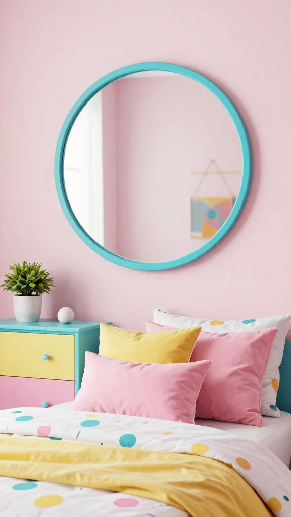 Colorful mirrors can transform rooms, adding a lively spirit while serving practical needs.