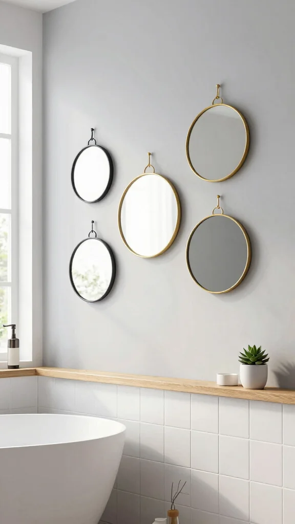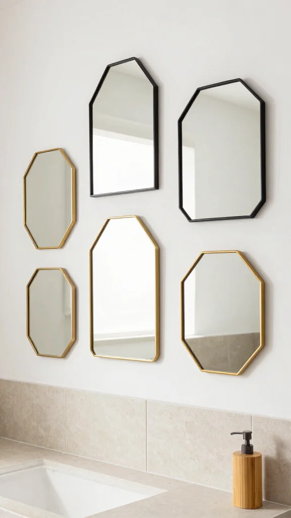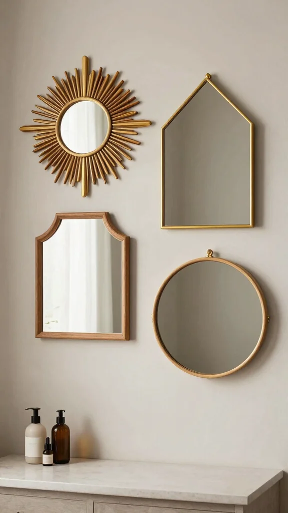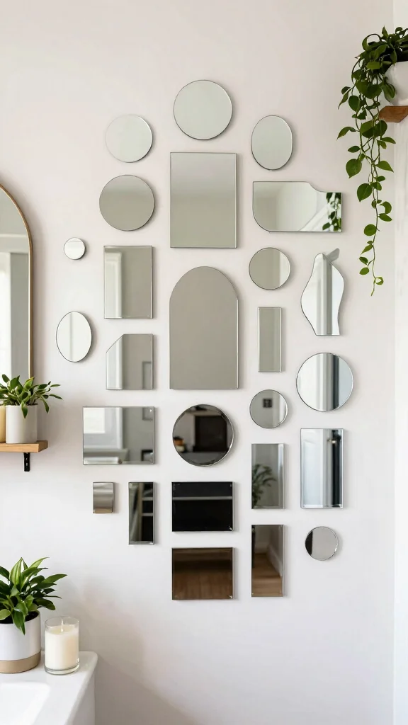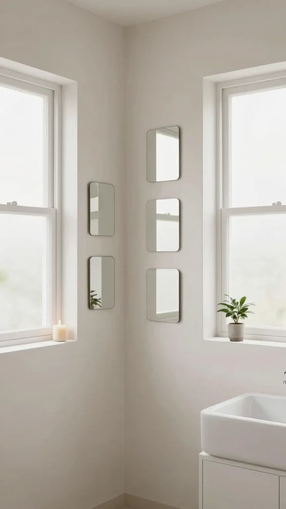 small mirrors on wall can transform a minimalist bathroom—try mixing sizes and orientations. Start with an asymmetrical layout to reflect different angles, then adjust spacing until it feels personal and balanced.