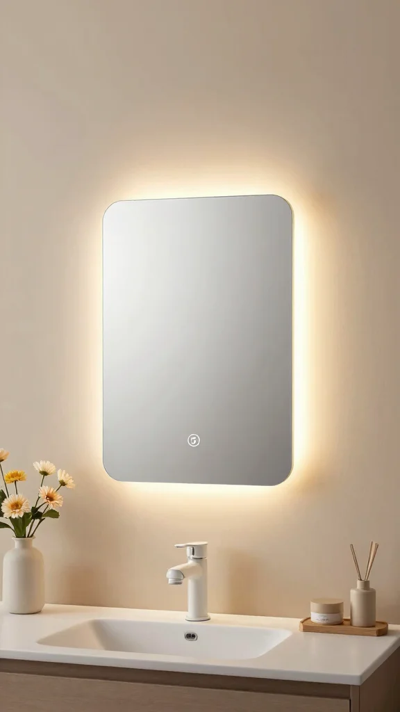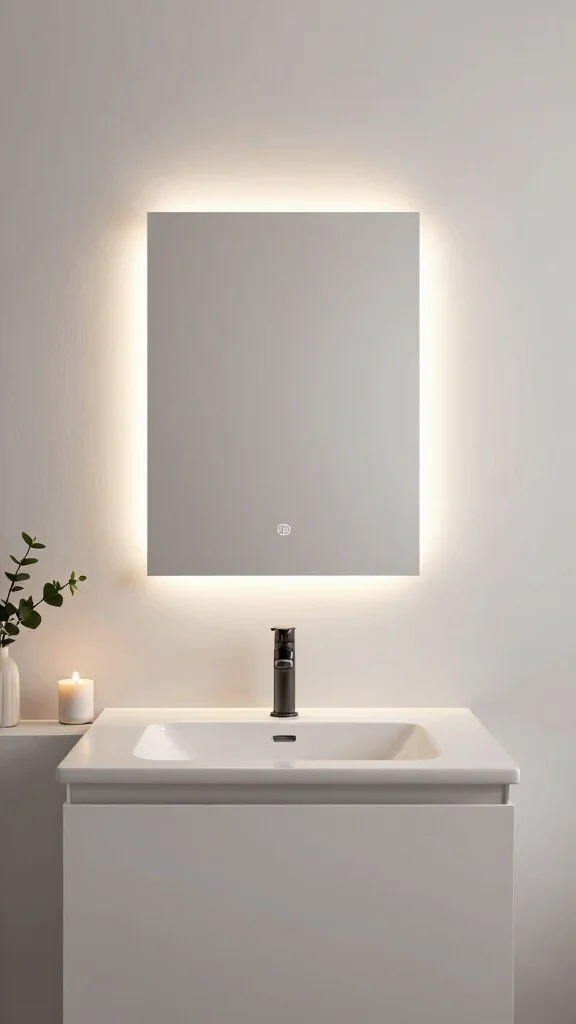 Incorporating mirrors with ambient lighting creates a soothing atmosphere in your minimalist bathroom. Backlit mirrors or those with integrated lighting fixtures enhance functionality while serving as stylish decor elements. These mirrors effectively brighten the space, making it feel more open and inviting. Position them strategically to provide both practical light and enhance the room’s overall decor.
