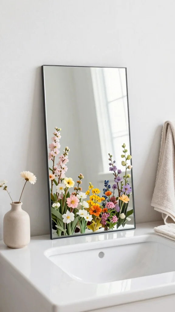Mirrors aren’t just for daily use; they also play a significant role in seasonal decor. Use small mirrors to reflect holiday decorations or seasonal flowers, enhancing the festive spirit without cluttering your space. For instance, hanging mirrors with delicate floral arrangements nearby can reflect colors and textures, creating a vibrant display that evolves with the seasons. This approach helps keep your decor fresh and dynamic while maintaining a minimalist aesthetic.