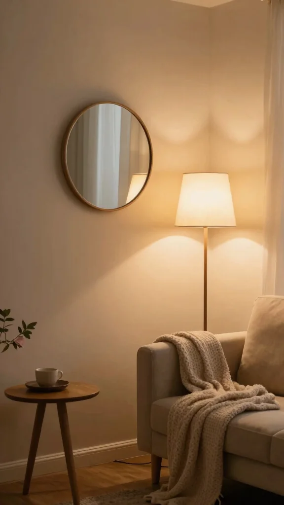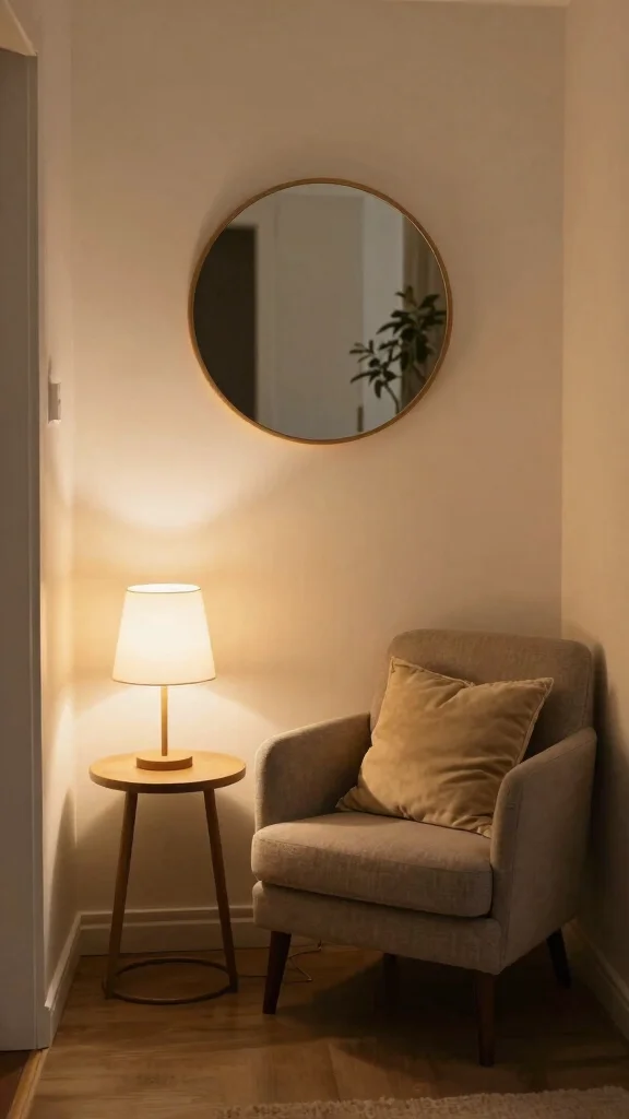 Transforming a simple corner into a cozy nook can be easily achieved with a small round mirror! This addition can make any tight area feel spacious and inviting. Pair the mirror with a small side table and a comfortable chair, creating the perfect reading spot.
