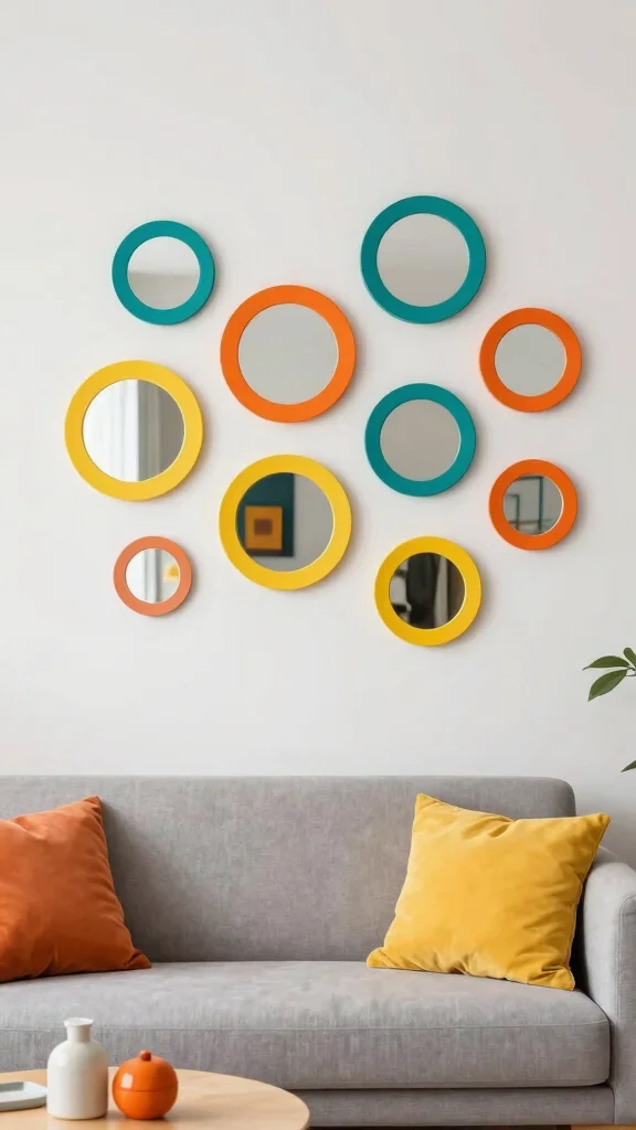 Small round mirrors in vibrant colors can serve as playful accents within your decor. Instead of sticking to traditional neutrals, opt for mirrors in bold hues that reflect your personality. This strategy introduces a splash of color while maintaining a minimalist approach.