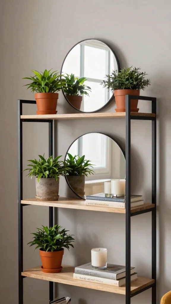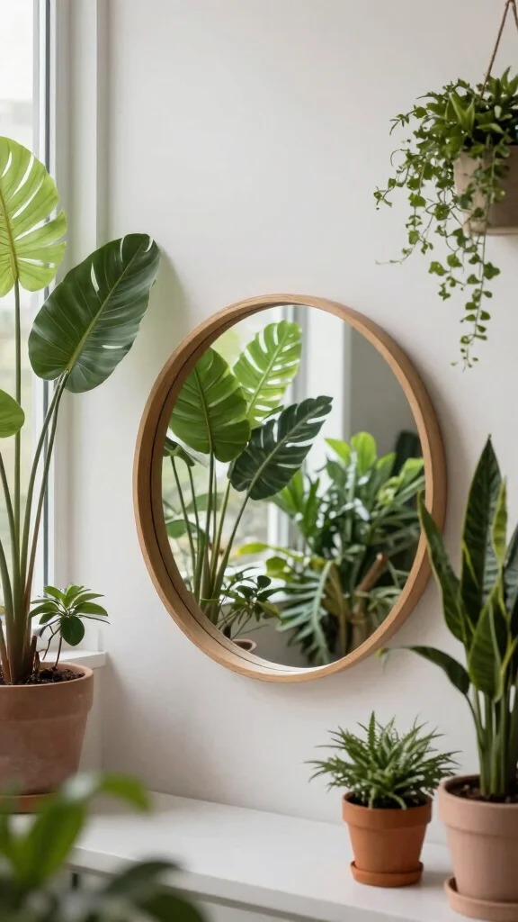 Tip: Experiment with varying heights for plants and mirrors to maintain a dynamic look. A tall plant alongside a low mirror adds interesting visual layers.
