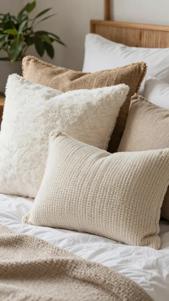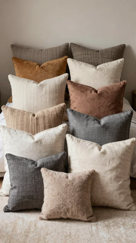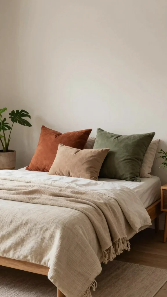 Mixing different earthy shades in your pillows provides subtle variety while maintaining a cohesive theme. Natural materials, such as cotton or jute, can further enrich the organic feel of your room.