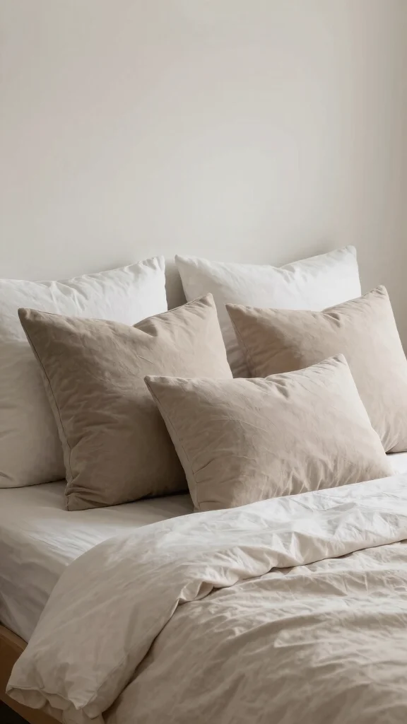 Pillows with soft textures, like faux fur or plush velvet, invite you to snuggle in and create a warm atmosphere. This minimalistic style emphasizes decluttering while maintaining an inviting feel.