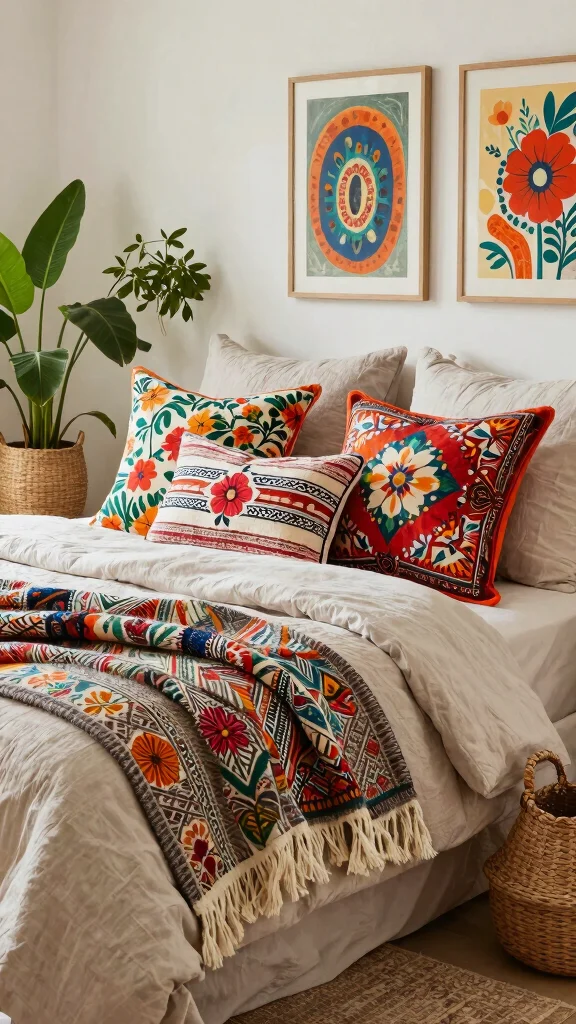 Question: How can I create a bohemian throw pillows bedroom aesthetic without clutter?
