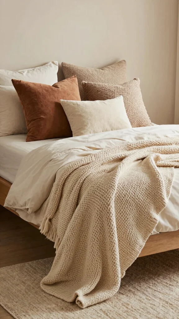 Pro Tip: Layering throws with your throw pillows bedroom arrangement adds instant texture and warmth—no empty corners. Drape a chunky knit over the bed end and mix textures with pillows for a cohesive, cozy retreat you can curl up in tonight.