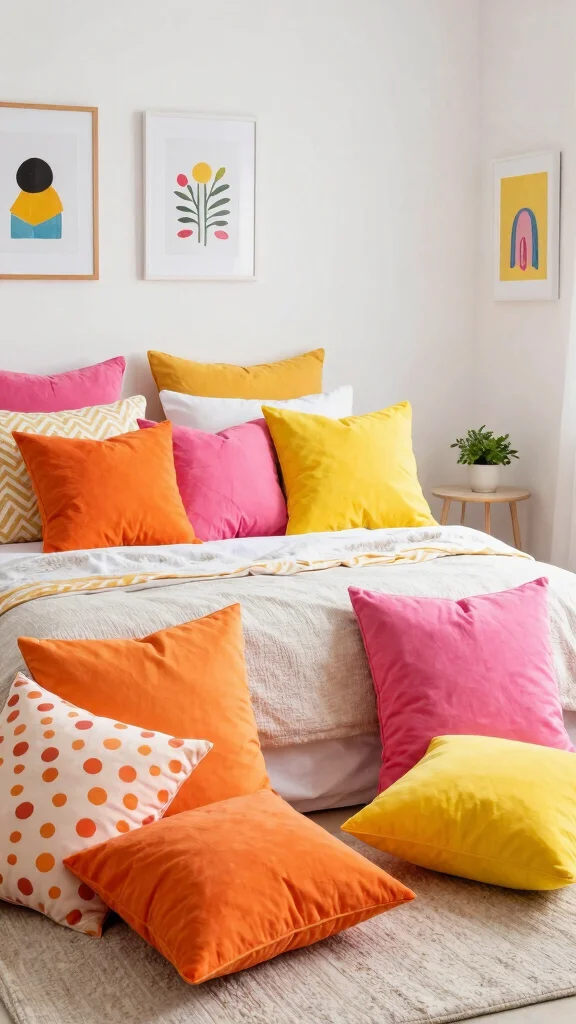 Infuse energy into your bedroom with throw pillows that deliver a vibrant pop of color! Incorporating bold shades like zesty oranges, sunny yellows, or lively pinks can create an uplifting atmosphere that brightens your space. Positioning these eye-catching cushions against a neutral backdrop makes them truly stand out, turning your bed into a focal point. Playful patterns and unique prints also add a refreshing touch, ensuring your room feels whimsical and dynamic.