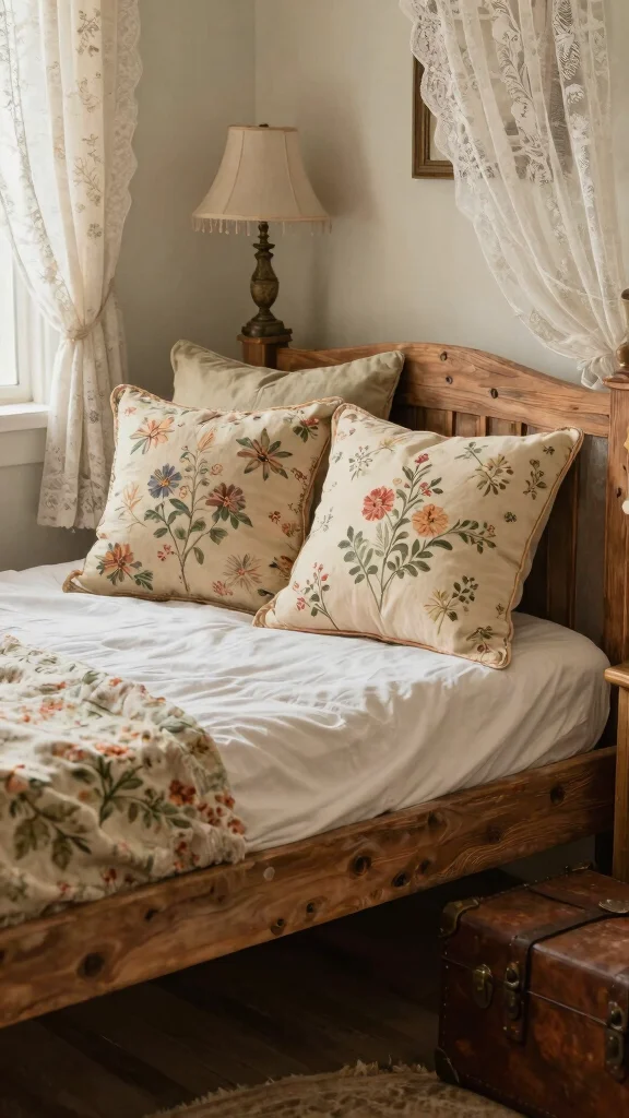 Incorporating vintage-inspired throw pillows can evoke a sense of charm and nostalgia in your bedroom. Seek out pillows adorned with retro patterns like paisley or floral prints that reflect timeless styles. Mixing these vintage finds with modern accessories creates a balanced and eclectic look, allowing for personal expression in your decor. This style not only adds character but tells a story about your unique taste and history.