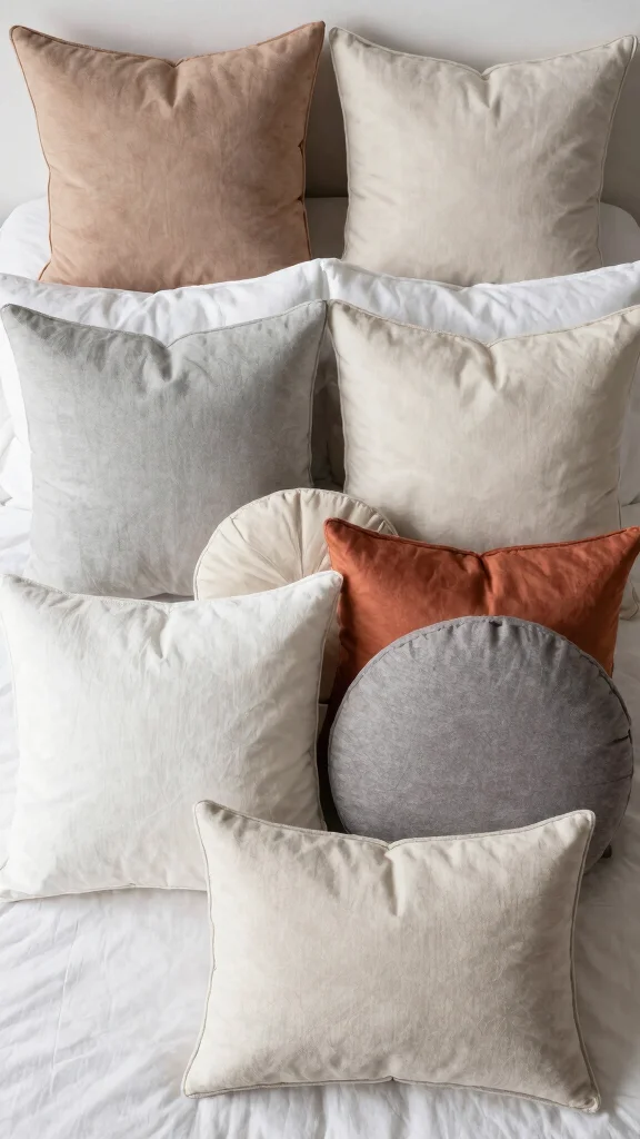 Pair velvet pillows with contrasting textures like linen or knit for a dynamic look. Stick to jewel tones to add an element of sophistication to your decor. Mixing different shapes can create visual interest in your pillow arrangement.
