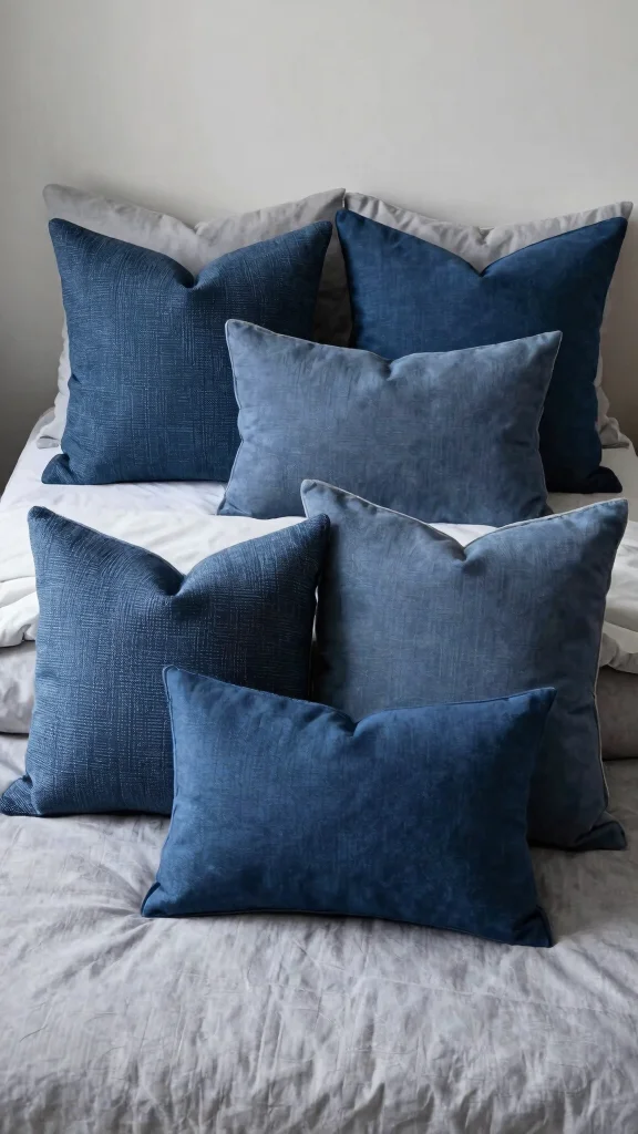 A monochromatic color scheme with your throw pillows can evoke tranquility and elegance. Layering varying shades of a single color creates a sophisticated and cohesive look on your bed. Imagine deep blues and lighter hues coexisting to create a serene atmosphere.
