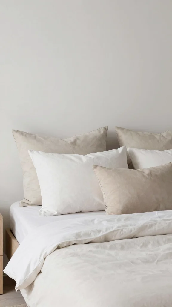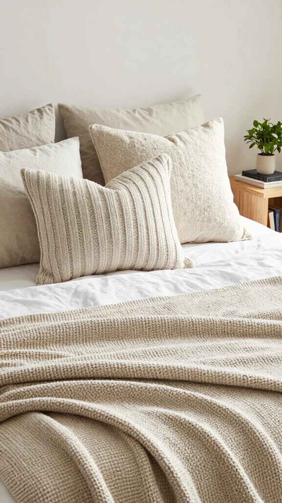 Stick to a neutral color palette for a serene effect. Incorporating varying textures can keep the look interesting while avoiding busy patterns. Consider using fewer pillows to maintain a clean and organized appearance.