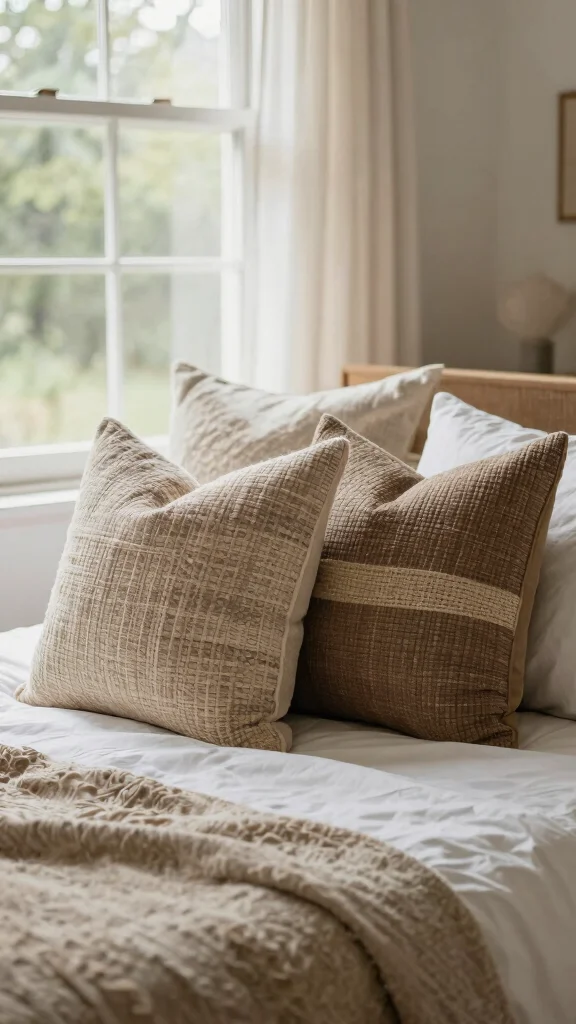 Pair textured pillows with solid colors to maintain a balanced look. Incorporating natural materials like jute or linen can enhance the organic feel of your decor. Use subtle nature-inspired colors like greens, browns, and creams for a cohesive palette.